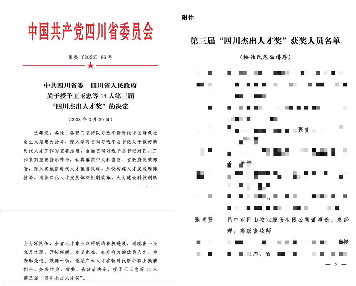 2023年2月20日,中共四川省委、四川省人民政府頒發(fā)了省第三屆“四川杰出人才獎(jiǎng)”,公司董事長(zhǎng)張育賢榮獲此殊榮。