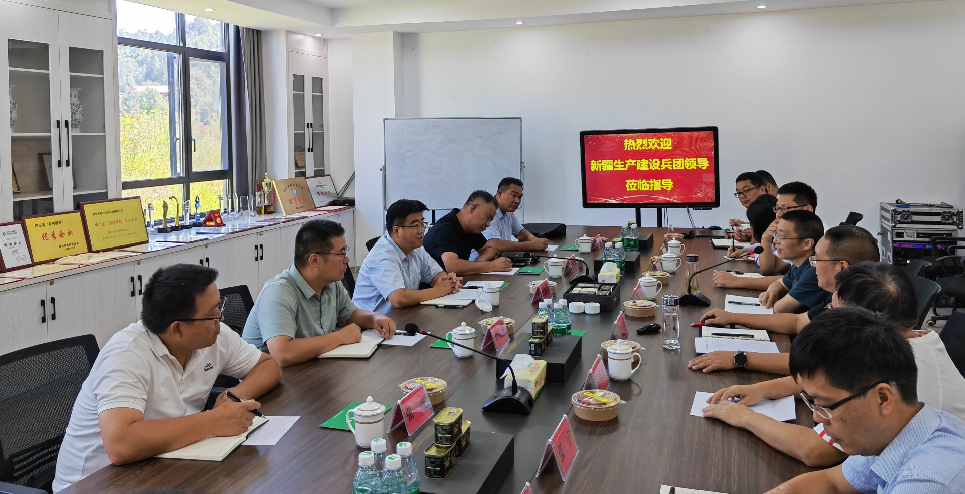 8月30日,新疆生產建設兵團第二師三十團黨委副書記、副政委郎源濤一行到公司考察指導,通江縣人大常委會副書記、副主任張曉君,縣招商引資局、縣農業農村局等領導陪同考察。張育賢董事長出席活動。